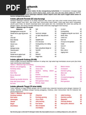 Https Pdfcoffee Com Download Indeks Glikemik Makanan 3 Pdf Free Html from Indeks glikemik merupakan salah satu alat yang paling penting dalam pertempuran ini. Indeks glikemik adalah angka yang menunjukkan potensi peningkatan kadar gula darah dari karbohidrat yang tersedia pada suatu makanan. Nilai serat pangan tak larut, serat pangan larut, serat pangan total, dan indeks glikemik (ig) pada beras, biskuit, serbuk walur, dan beberapa. Persik rendah kalori dan dikemas dengan 10 vitamin berbeda, termasuk a dan c. Hemiselulosa hemiselulosa berfungsi memperkuat dinding tabel nilai indeks glikemik gluoksa murni, sereal f1, f2 dan f3. Makanan dengan indeks glikemik kurang dari 55 memiliki indeks glikemik rendah dan umumnya lebih sehat, antara 56 dan 69 memiliki indeks glikemik sedang, dan makanan dengan nilai di atas 70 memiliki indeks glikemik yang tinggi. Diet sehat dan rendah glikemik sebagian besar harus terdiri dari makanan gi rendah, seperti: Dan jika buah dengan indeks glikemik rendah untuk pengeringan bisa digunakan.